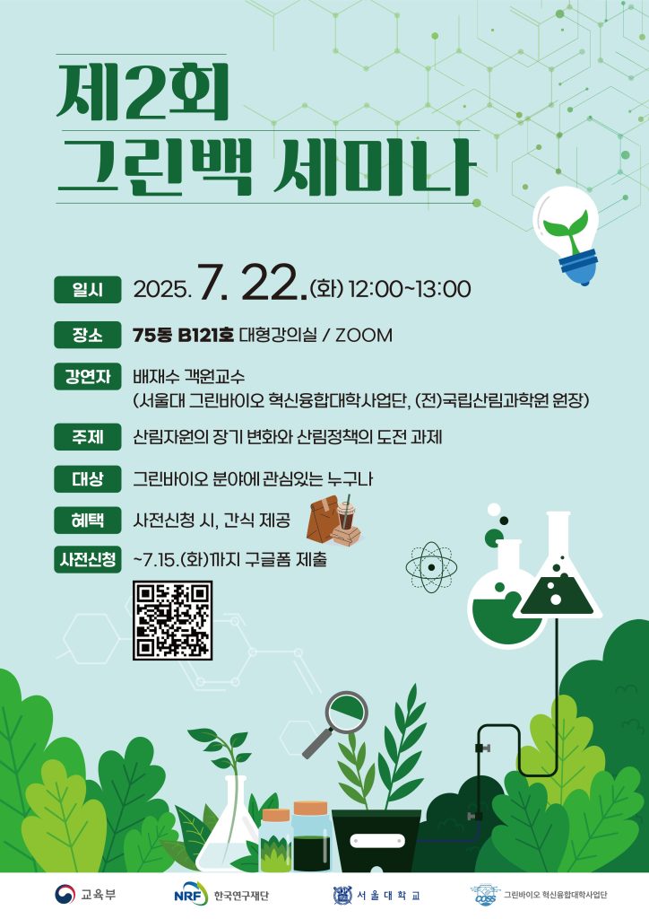 그린바이오 혁신융합대학사업단에서 제 2회 그린백 세미나를 운영합니다.